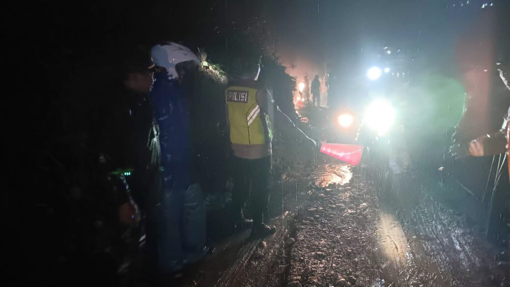 Garut | tabloidinfopolri.id – Personel Polsek Banjarwangi melakukan pengecekan Tempat Kejadian Perkara (TKP) bencana tanah longsor yang terjadi di Jalan