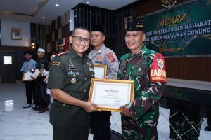 Dalam sambutannya, Danrem 063/SGJ Kolonel Inf Hista Soleh Harahap menyampaikan bahwa pergantian jabatan merupakan bagian dari dinamika organisasi dan pembinaan satuan agar roda tugas berjalan optimal. Ia juga berpesan kepada pejabat baru untuk segera menyesuaikan diri dan meneruskan capaian positif pejabat sebelumnya. Pada kesempatan yang sama, Danrem menyerahkan hadiah kepada para pemenang Lomba Keagamaan HUT ke-80 TNI yaitu Hafis Qur’an, MTQ, Kultum dan Hadroh, seraya berpesan agar prestasi tersebut menjadi motivasi dalam meningkatkan keimanan, semangat kebersamaan, dan pengabdian kepada bangsa dan negara. (Didi.S)