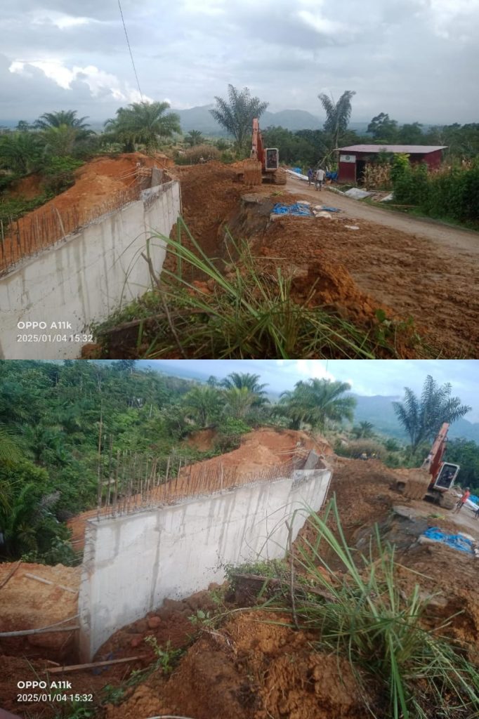 INFOPOLRI.ID – Pembangunan tembok penahan jalan Propinsi yang longsor di Desa Tanjung Raja Kecamatan Sinembah Tanjung muda hulu (STM) hulu