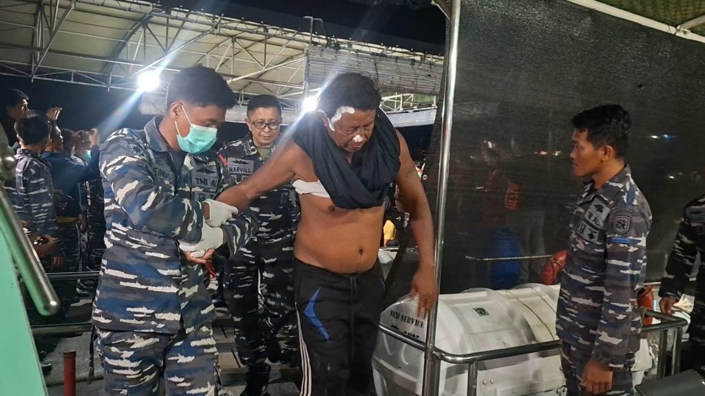 Tabloidinfopolri.id | Bitung – Tentara Nasional Indonesia Angkatan Laut melalui Satuan Patroli (Satrol) Kodaeral VIII merespon cepat kebakaran kapal penangkap