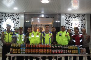 Dalam rangka menanggulangi peredaran minuman keras ilegal, petugas berhasil mengamankan 129 botol miras yang diduga dijual tanpa izin.