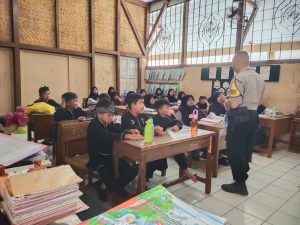 Isi kegiatan di kelas, personel Polsek Plered sampaikan pesan kamtibmas tentang pencegahan maraknya aksi kenakalan remaja dalam lingkungan bermasyarakat dan sekolah.