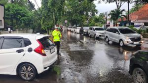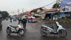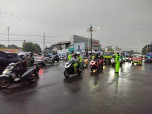tabloidinfopolri.id | PURWAKARTA – Mengantisipasi terjadinya Kemacetan akibat curah Hujan dengan intensitas lebat yang melanda Kabupaten Purwakarta, Satlantas Polres Purwakarta melakukan pengaturan arus lalulintas.