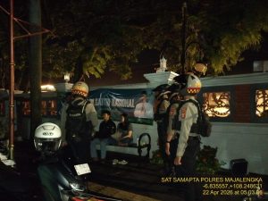 Majalengka – tabloidinfopolri.id | Guna mengantisipasi tindak kejahatan jalanan dan menjamin keamanan masyarakat pada malam hari, Satuan Samapta Polres Majalengka Polda Jabar intensif melaksanakan Patroli Perintis Presisi. Fokus utama kegiatan ini adalah mencegah aksi C3 (Curat, Curas, Curanmor), tawuran, geng motor, serta potensi gangguan keamanan lainnya di pusat keramaian Kota Majalengka, Selasa (21/4/2026).