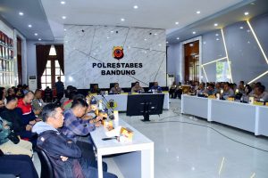tabloidinfopolri.id | Polrestabes Bandung – Plt. Kapolrestabes Bandung Kombes Pol. Adiwijaya, S.I.K., didampingi Kabag Ops Polrestabes Bandung AKBP Dr. H. Asep Saepudin, S.Pd., M.H., melaksanakan Rapat Koordinasi (Rakor) pengamanan pertandingan sepak bola Indonesia Super League antara Persib Bandung melawan Arema FC, yang dilaksanakan pada hari Selasa, 20 April 2026, pukul 09.30 WIB hingga selesai, bertempat di Aula Mapolrestabes Bandung.