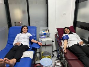 Mereka mengikuti prosedur donor mulai dari pengisian formulir, pemeriksaan tekanan darah, pemeriksaan kadar HB, hingga proses pengambilan darah serta observasi pasca-donor.