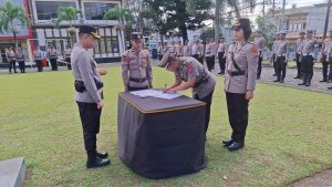 Rangkaian kegiatan sertijab ditandai dengan pengambilan sumpah jabatan oleh Kapolres Bitung kepada pejabat yang baru, dilanjutkan dengan penandatanganan berita acara serah terima jabatan.