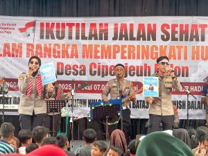 Acara semakin meriah dengan penampilan Bageur Band yang membawakan lagu-lagu bernuansa semangat dan edukatif. Lewat musik, tersampaikan pesan kamtibmas tentang tertib lalu lintas, hidup sehat, menjauhi narkoba, hingga menjaga kerukunan bersama. Antusiasme warga semakin bertambah dengan pembagian doorprize menarik yang membuat suasana penuh keceriaan.