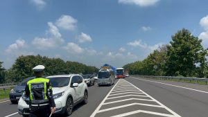 “Sesuai dengan arahan Kapolres Majalengka AKBP Rita Suwadi, S.H., S.I.K., M.M., kami dari Satgas Kamseltibcar Lantas melakukan pengaturan dan pengeluaran kendaraan sumbu tiga melalui Gate Tol Kertajati di KM 158. Hal ini penting untuk menjaga volume kendaraan di dalam tol agar tetap stabil dan mencegah terjadinya perlambatan yang signifikan akibat kendaraan bermuatan besar,” ujar AKP Pandu Renata S.