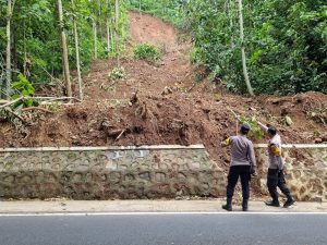 tabloidinfopolri.id | Majalengka – Kapolsek Cikijing Polres Majalengka Polda Jabar AKP Asep Rusmawan, S.H. beserta Anggota melaksanakan peninjauan lokasi rawan longsor di jalan Nasional Cikijing-Kuningan, tepatnya di Blok Cipadung Desa Sindangpanji, Kecamatan Cikijing, Kabupaten Majalengka, Kamis (30/01/2025).