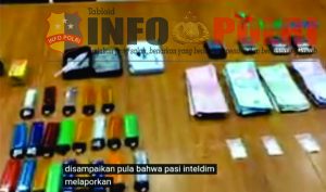 Turut diamankan, 8 bungkus plastik klip sedang di duga berisi sabu, 12 buah bong, 5 buah timbangan, 22 buah Nangis, 11 bungkus plastik klip kosong, Rp. 4.851.000 Uang tunai, 1 buah HP warna hitam,1 buah dompet, 2 buah kaca pirex,14 buah scop,1 kotak kartu Domino, 1 kotak kosong Rokok Dji Sam Soe, 1 buah Gunting, 2 buah Carger HP, 1 buah senter