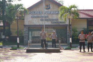 Kegiatan apel pagi jam pimpinan di halaman Mapolres Purwakarta, Pada Senin, 6 October 2025 itu diikuti oleh pejabat utama, perwira dan bintara serta PNS Polri.