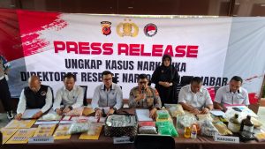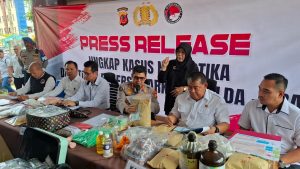 “Dari tangan para tersangka, polisi menyita berbagai barang bukti narkotika, di antaranya 10.946 gram sabu, 556 butir ekstasi, 14.132 gram ganja, 8.084 gram tembakau sintetis, 560 ml cairan tembakau sintetis, 6,2 gram bibit tembakau sintetis, 272.625 butir obat keras terbatas (OKT), serta 2.986 butir psikotropika.” ungkap Kombes Hendra, Senin (29/9/2025)
