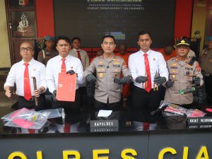 tabloidinfopolri.id | Polres Cianjur Polda Jabar – Polres Cianjur menggelar konferensi pers pengungkapan kasus tindak pidana pencurian di minimarket yang terjadi di 9 toko minimarket di wilayah Kabupaten Cianjur, konferensi pers tersebut dipimpin langsung oleh Kapolres Cianjur AKBP Rohman Yonky Dilatha, S.I.K., M.Si., M.H. dan berlangsung di depan Gedung Satreskrim Polres Cianjur, Senin (20/1/2025).
