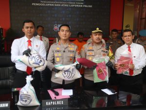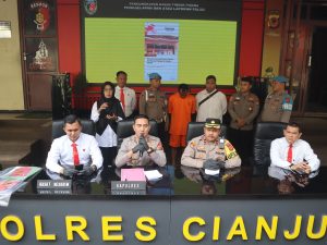 tabloidinfopolri.id | Cianjur – Polres Cianjur menggelar konferensi pers pengungkapan kasus dugaan tindak pidana penggelapan beras ketahanan pangan, konferensi pers tersebut dipimpin langsung oleh Kapolres Cianjur AKBP Rohman Yonky Dilatha, S.I.K., M.Si., M.H. dan berlangsung di depan Gedung Satreskrim Polres Cianjur, Senin (20/1/2025).
