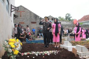 Upacara pemakaman yang dipimpin Kapolres Purwakarta, AKBP I Dewa Putu Gede Anom Danujaya di pemakaman keluarga di Desa Rancabali, Kecamatan Padalarang, Kabupaten Bandung Barat.