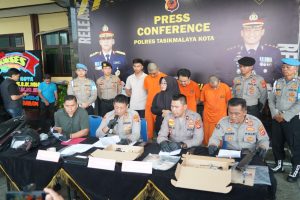 Pada Kamis, 16 Januari 2025, Kapolres Tasikmalaya Kota, AKBP Moh Faruk Rozi, S.I.K., M.Si., menggelar konferensi pers untuk mengungkap tiga kasus kriminal yang tengah ditangani oleh Satreskrim Polres Tasikmalaya Kota. Ketiga kasus tersebut meliputi rudapaksa yang melibatkan pimpinan lembaga pendidikan, penganiayaan dengan senjata api rakitan, dan percobaan pemerasan di Indomaret.