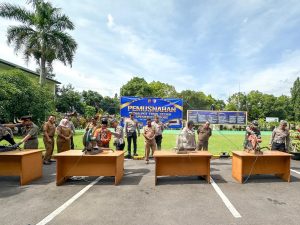 Tabloidinfopolri.id – Jajaran Polresta Cirebon memusnahkan ribuan minuman keras (miras) berbagai merek dan knalpot tidak sesuai spesifikasi teknis, Senin (29/9/2025). Miras dan knalpot tidak sesuai spesifikasi teknis yang dimusnahkan tersebut merupakan hasil KRYD dan Operasi Pekat Polresta Cirebon serta Polsek jajaran.