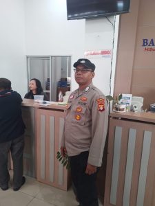 Palangka Raya – Personel Polsek Bukit Batu Polresta Palangka Raya melaksanakan pengamanan dan pemantauan kegiatan penyaluran bantuan sosial Kartu Huma Betang Sejahtera (KHBS) yang berlangsung di BPK Cabang Pembantu Tangkiling, Kelurahan Banturung, Kecamatan Bukit Batu.