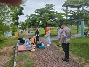 Taman Teluk Seruo, yang dikenal dengan keindahan alamnya, menjadi salah satu tujuan wisata favorit bagi warga sekitar. Namun, pada hari itu, situasi di taman terlihat cukup ramai dengan pengunjung yang datang dari berbagai daerah. Untuk memastikan kenyamanan dan keselamatan para wisatawan, anggota Polsek Indralaya melakukan patroli secara rutin di area taman dan sekitar danau.
