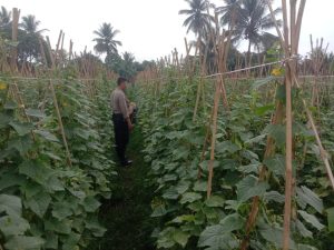 Kegiatan tersebut berlangsung di Kampung Cibeurih RT 009/005, Desa Warungjeruk, Kecamatan Tegalwaru, Kabupaten Purwakarta, dan dihadiri oleh Aipda Asep Suhendar, selaku Bhabinkamtibmas Desa Warungjeruk, bersama Bapak Aip selaku pengelola kebun mentimun.