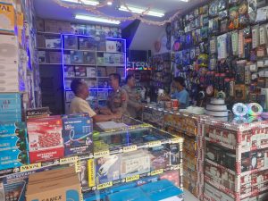 Sambangi Toko Elektronik, Bhabinkamtibmas Polsek Cikijing Sampaikan Pesan Kamtibmas