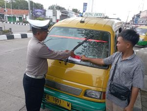 Petugas Satlantas turun langsung ke sejumlah titik strategis di wilayah hukum Polres Majalengka untuk membagikan dan memasang bendera merah putih pada kendaraan yang beroperasi.