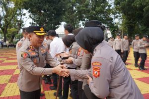 Tak hanya itu, Kapolres juga menyalami satu per satu seluruh personel sebagai wujud penghargaan dan keakraban, sekaligus mempererat hubungan antara pimpinan dan anggota.