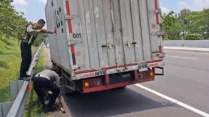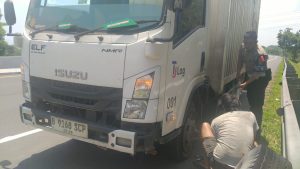 PURWAKARTA – INFO POLRI.id | Kesigapan personel Satlantas Polres Purwakarta kembali terlihat saat membantu pengemudi kendaraan logistik yang mengalami kendala di Tol Cipali. Sebuah kendaraan box pengangkut paket logistik dengan nomor polisi B 9168 SCP yang melaju dari arah Tangerang menuju Solo mengalami pecah ban depan sebelah kiri saat melintas di KM 80.200 Jalur A Tol Cipali.