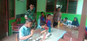 pertumbuhan dan perkembangan mereka. Dalam kegiatan monitoring tersebut, Babinsa dari TNI dan Bhabinkamtibmas dari Kepolisian berkolaborasi untuk memastikan distribusi makanan berjalan lancar dan tepat sasaran.