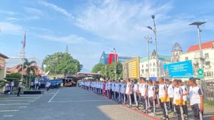 Apel olahraga pagi diawali dengan pengecekan kekuatan personel, dilanjutkan arahan Wakapolresta, dan senam bersama untuk menjaga kebugaran fisik anggota.